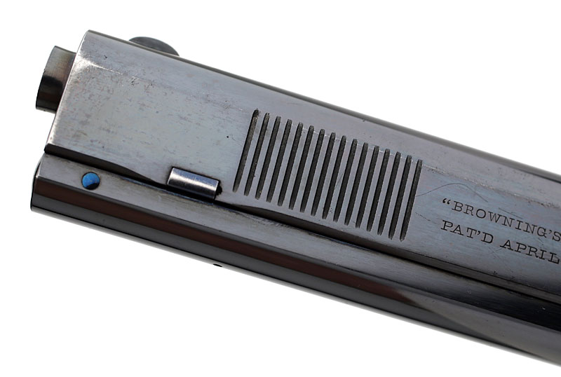 Colt Model 1900 Serial number 4238 retains most of the original finish and shows very little wear. Most of the original fire blue remains on the face of the trigger. It's fairly uncommon to find examples of the Colt Model 1900 with this much original finish.
